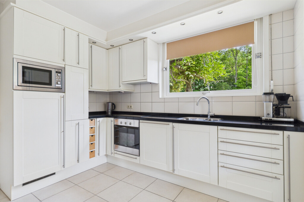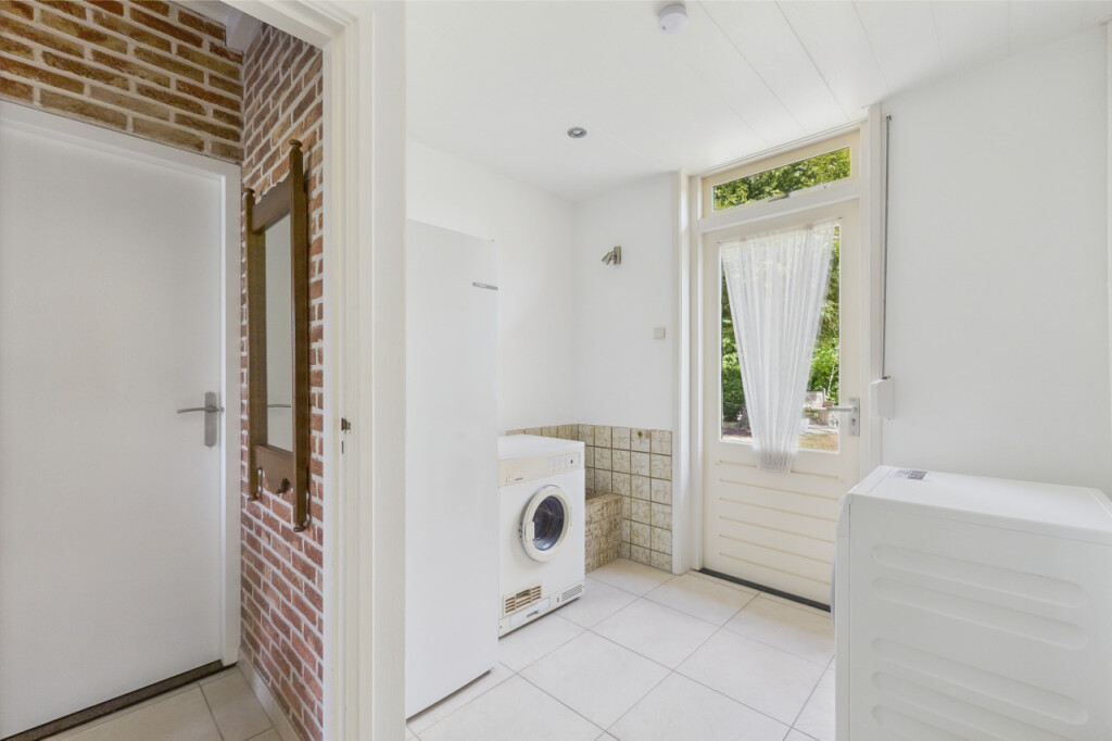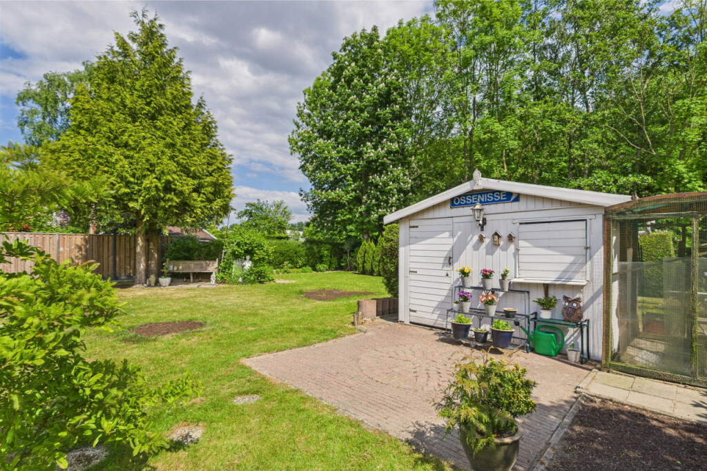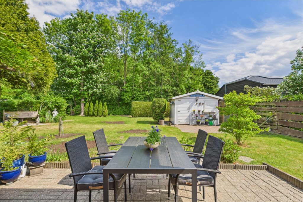 Tuin: De fraai aangelegde tuin grenst aan een groenvoorziening, wat zorgt voor een rustige en natuurlijke achtergrond. De tuin biedt een combinatie van een royaal terras, gazon, een karakteristieke kastanjeboom en diverse fruitstruiken. Gedurende de dag is er altijd wel een plekje te vinden om van de zon te genieten, terwijl je in alle rust omringd bent door groen.