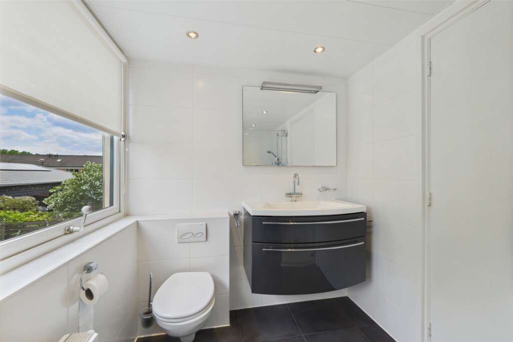 Verdieping: op de eerste verdieping tref je drie slaapkamers, een moderne badkamer (2009) met douchecabine, wastafelmeubel, zwevend toilet en designradiator, een cv-ruimte (Remeha combiketel, 2015) en een berging. Deze berging biedt de mogelijkheid om een vierde slaapkamer te realiseren, afhankelijk van je woonwensen. De gehele verdieping is voorzien van laminaat en er is bovendien nog een vliering voor extra bergruimte.