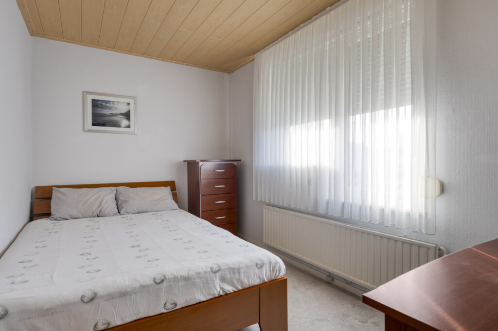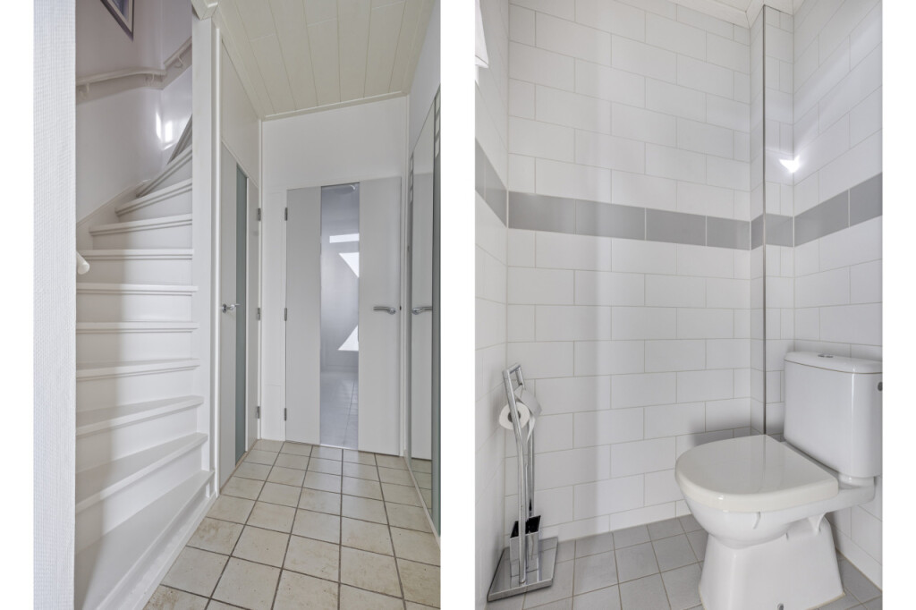 Op de eerste verdieping geeft de overloop toegang tot 3 slaapkamers, stuk voor stuk licht en praktisch ingedeeld. De badkamer is ingericht met een inloopdouche, wastafel en designradiator.