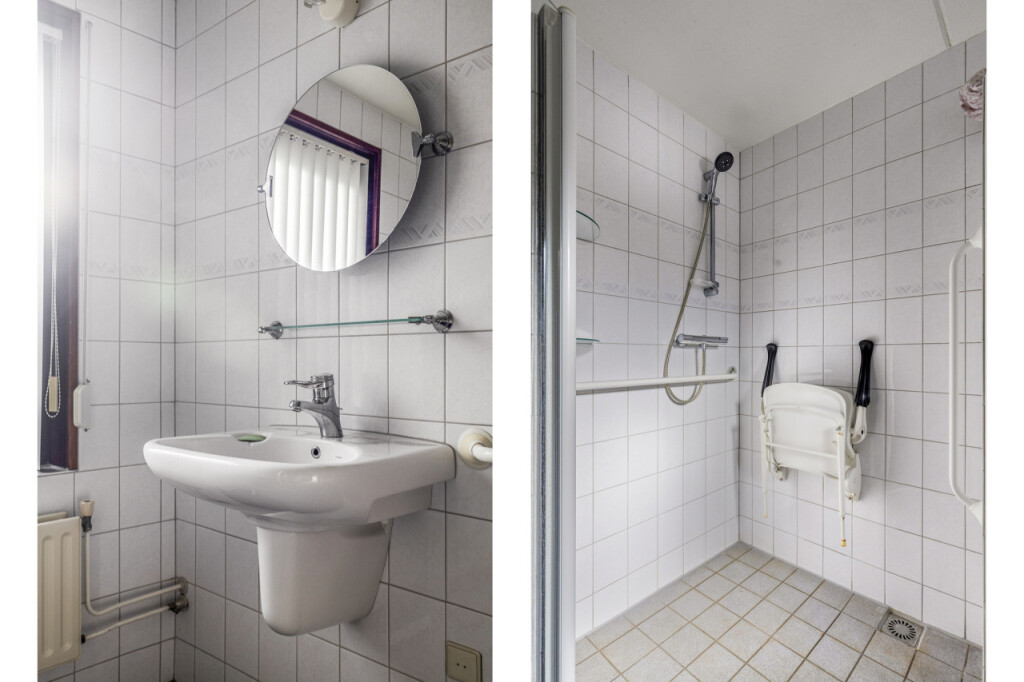 Op de eerste verdieping bevinden zich drie slaapkamers en de badkamer. De badkamer is uitgerust met een douche, wastafel en een hangtoilet. Eén van de slaapkamers beschikt bovendien over een eigen wastafel.