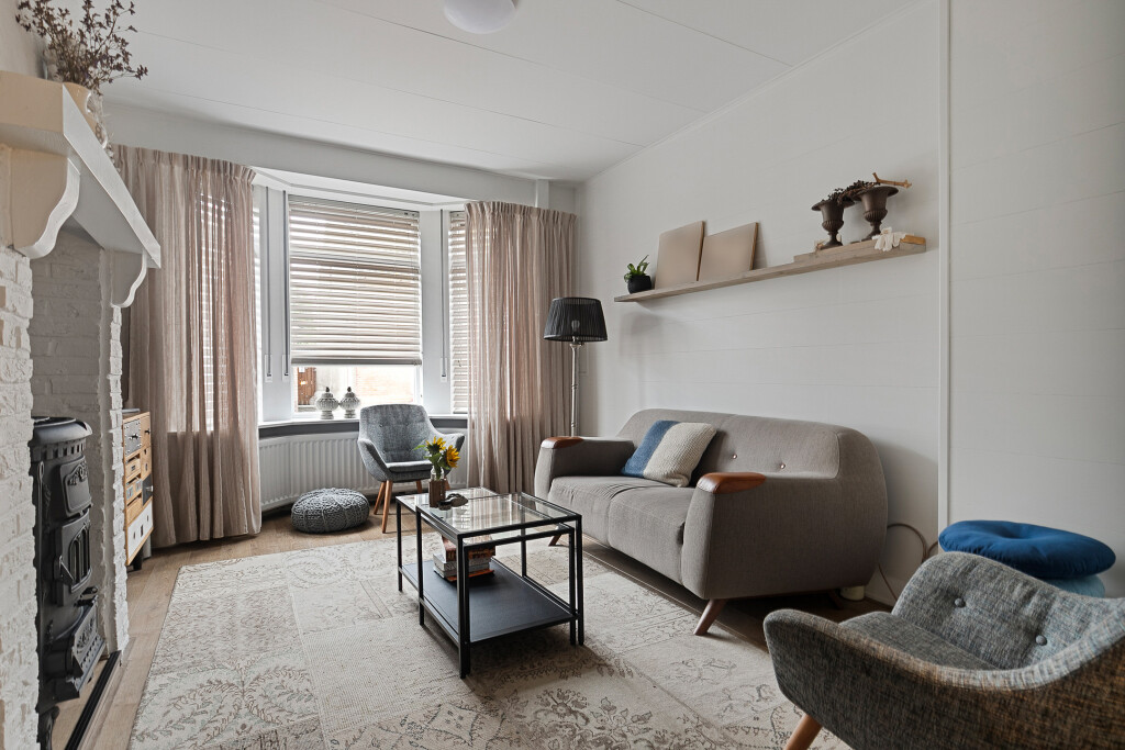 - De woning heeft overal houten kozijnen met grotendeels dubbel glas en deels rolluiken