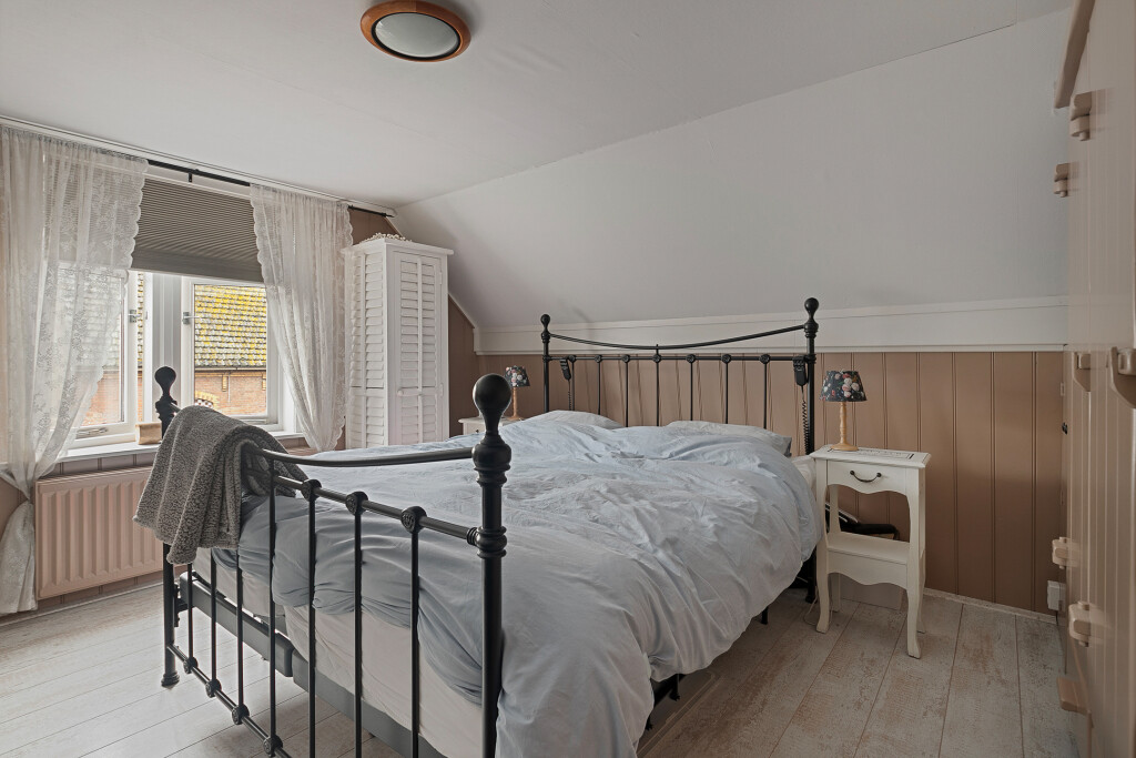 Via een trap in de keuken komt u op een overloop met kastruimte en inbouwkast. Aan de voorzijde van de woning is er een ruime slaapkamer met inbouwkast. Aan de achterzijde van de woning is er een middelgrote slaapkamer.