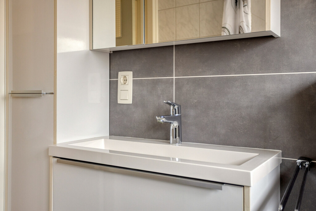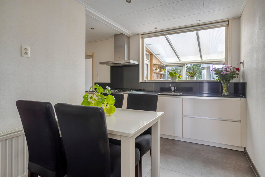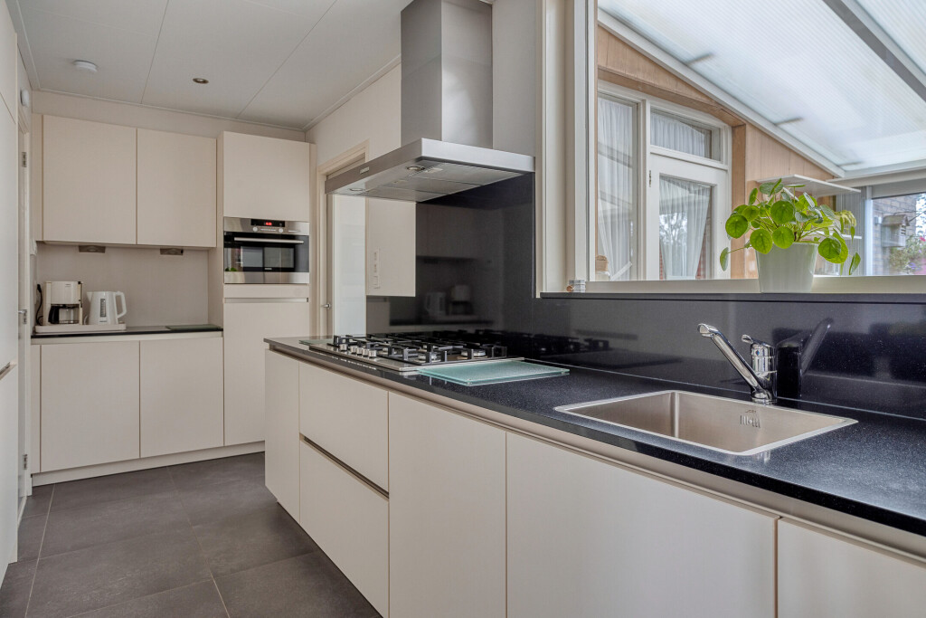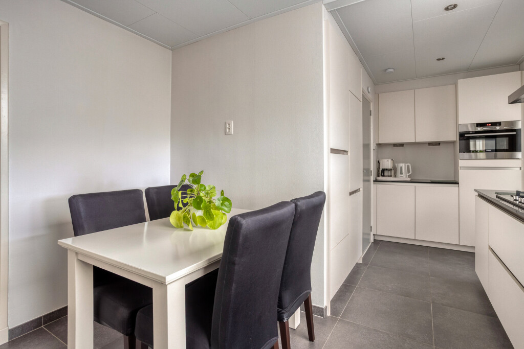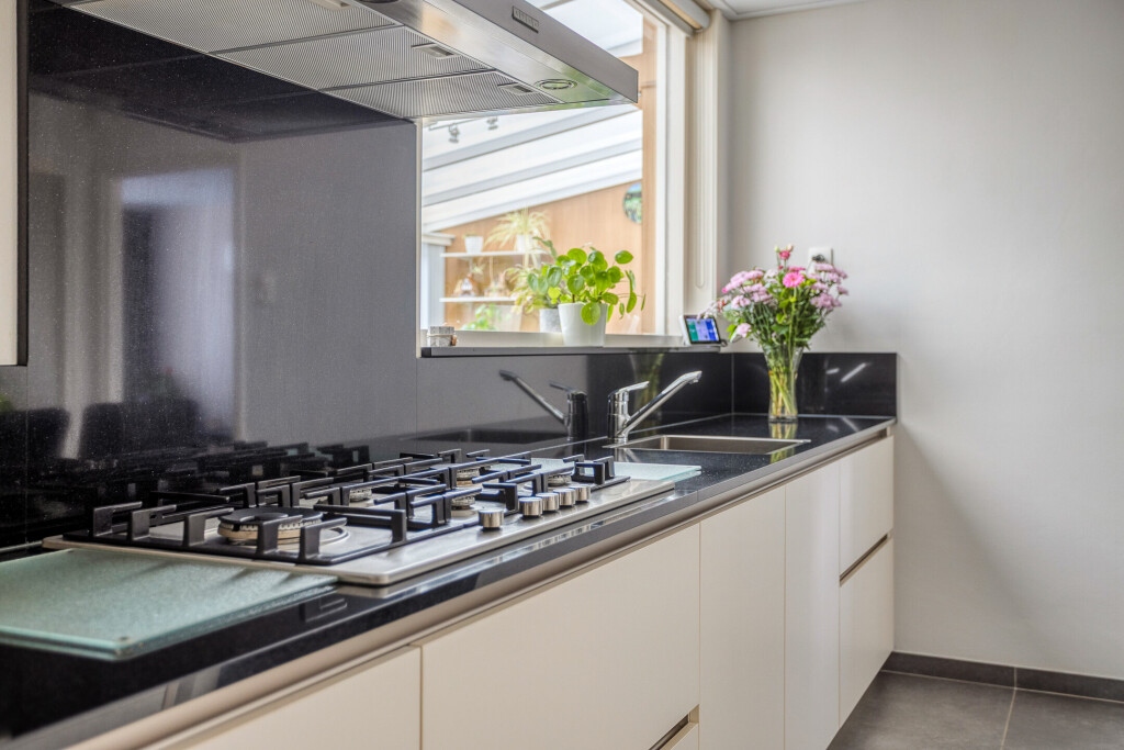 De ruime woonkamer met grote ramen en veel daglicht is de ideale plek om samen te komen of juist heerlijk te ontspannen. De keuken, modern en praktisch ingericht, biedt alle ruimte om uitgebreid te koken én gezellig samen te ontbijten.
