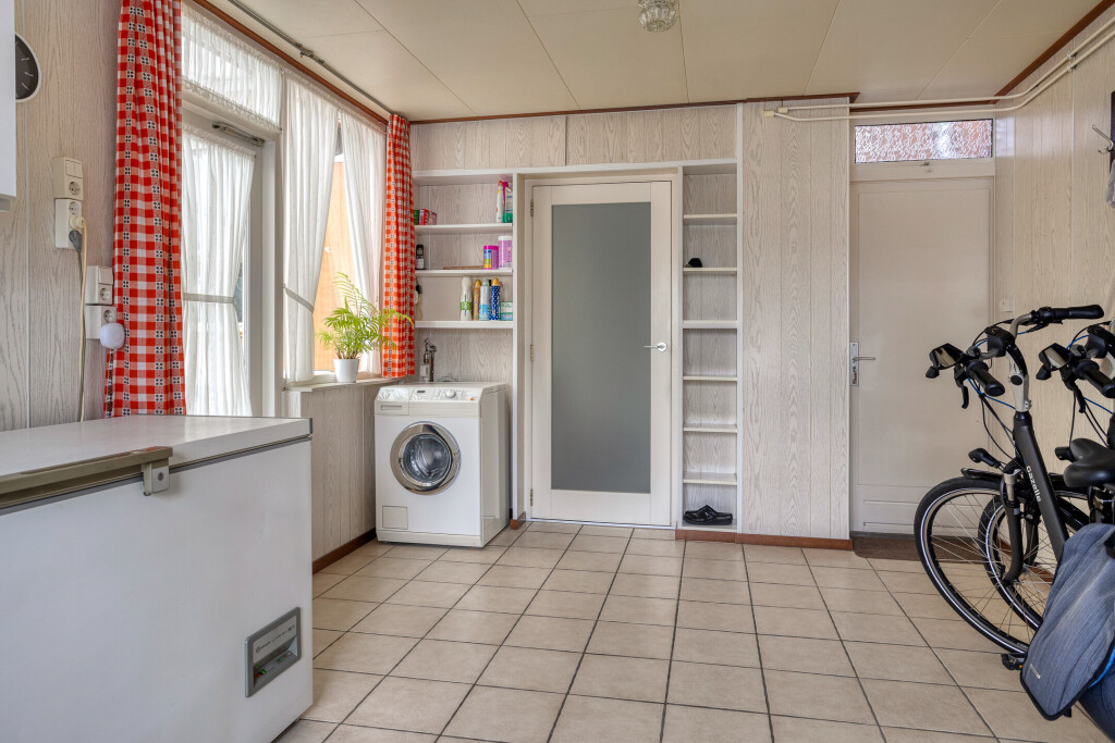 Entree in de hal met toilet, meterkast, garderobe en inbouwkast. Via de hal is een (droge) kelder bereikbaar, 4 treetjes omlaag en handig voor uw voorraad. Vanuit de hal komt u in de L-vormige eetkeuken. De keuken heeft een rechte opstelling en een grote kastenwand. De keuken is voorzien van een 5-pits gasfornuis, afzuigkap, vaatwasser, combi/oven, en koelkast. De ruime woonkamer is heerlijk licht door de grote raampartijen en heeft een gezellige gashaard. Vanuit de woonkamer is een grote schuifpui naar de heerlijke serre. De serre is echt een verlengstuk van de tuin en van de woonkamer. Het dak is dubbelwandig geïsoleerd en voorzien van een zonwerend doek dat zelfsturend is (elektrisch) voor de zon en wind. Via de serre en vanuit de keuken is er een deur naar de ruime bijkeuken. Hier is voldoende ruimte voor alle wasapparatuur en een extra berging. Tevens is hier een deur die als achterom gebruikt wordt. Vanuit de keuken is er toegang tot de inpandige garage met cv-installatie (Remeha ’07) en een elektrische roldeur. Bovendien is hier toegang tot een tweede kelder met ruimte voor uw wijncollectie. De verwarmde garage leent zich ook prima om bij de woning getrokken te worden.