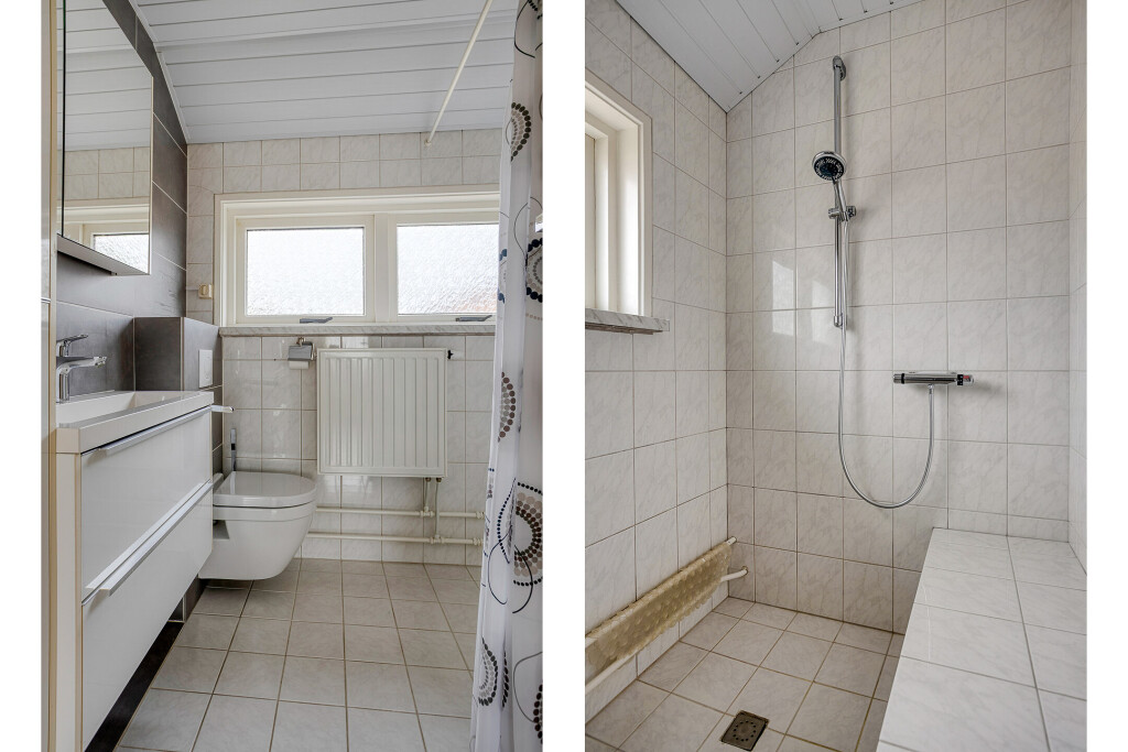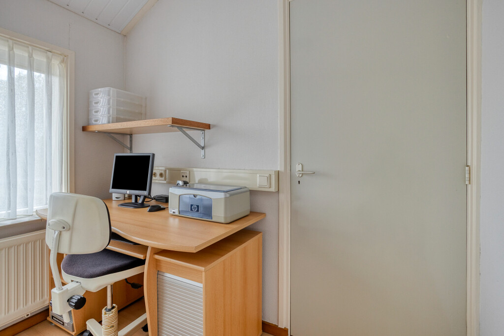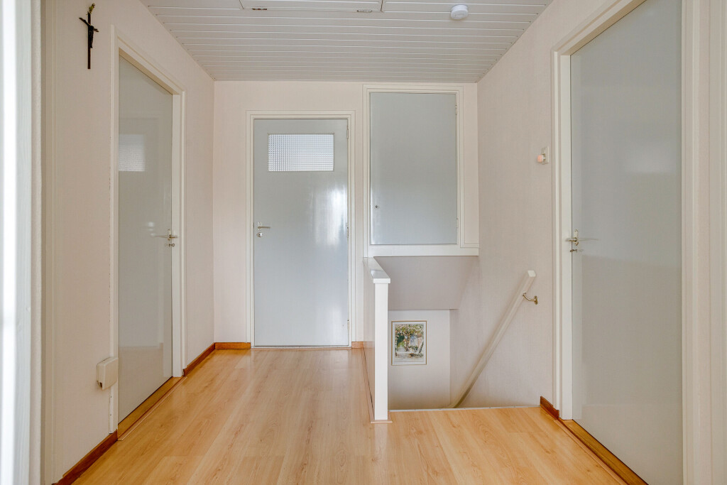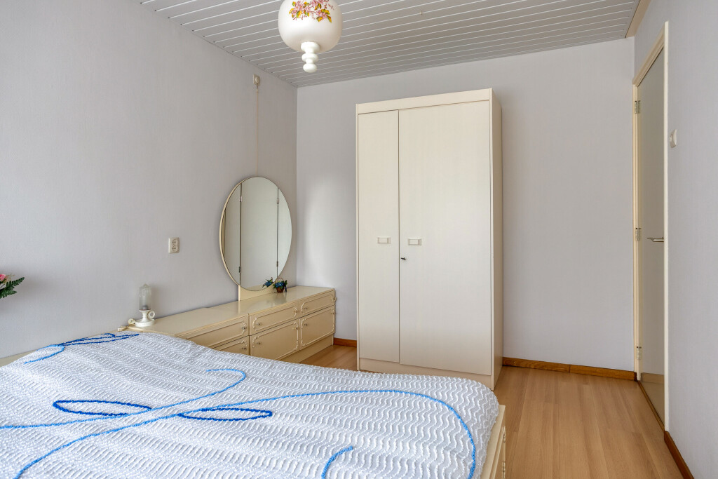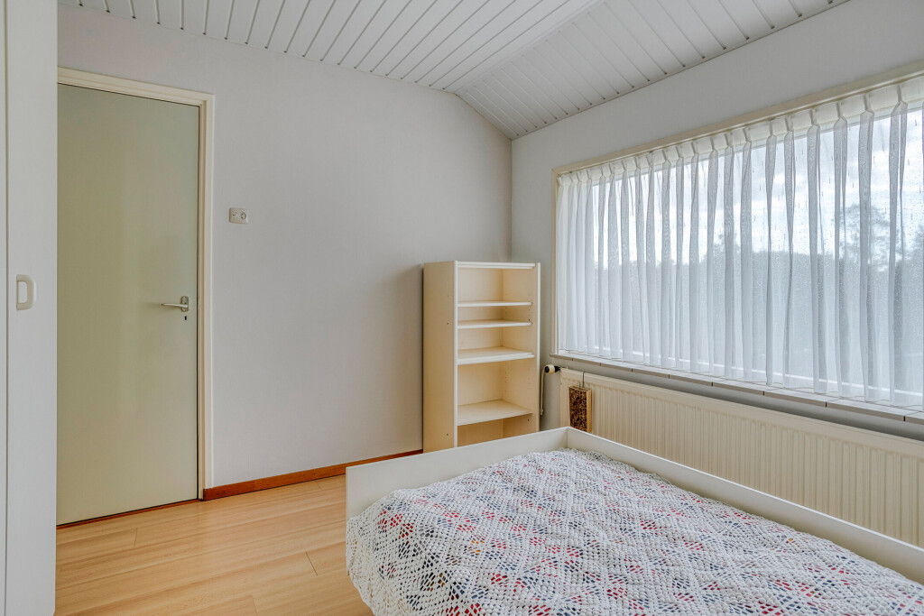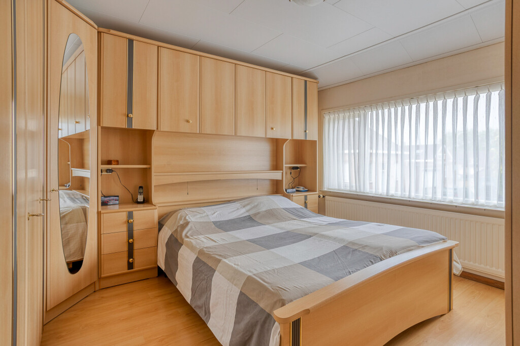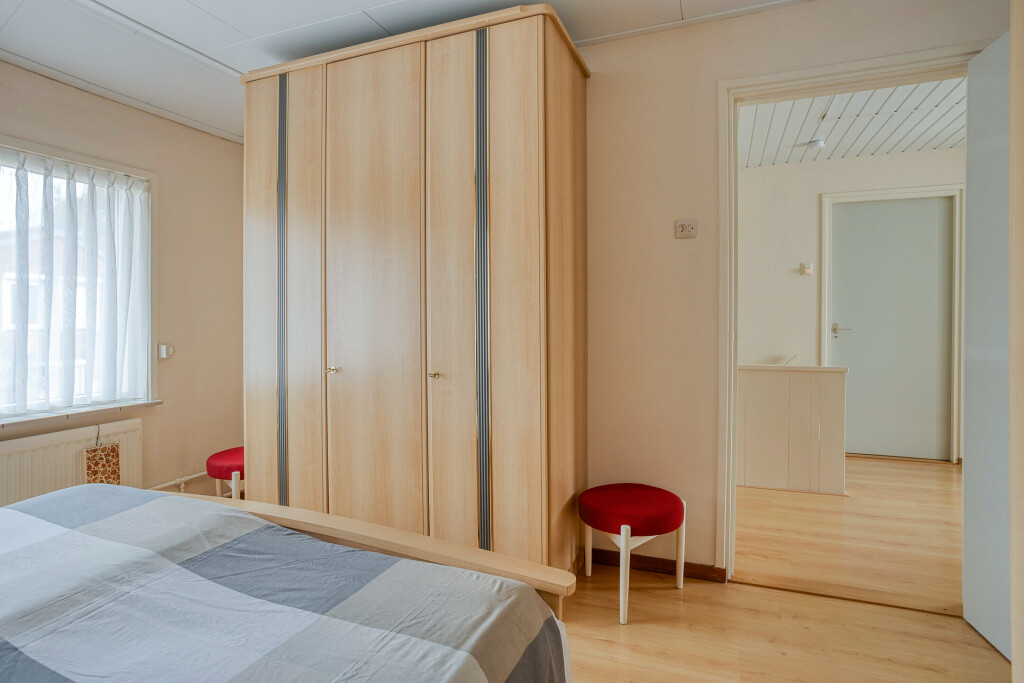Ruime overloop met laminaatvloer en 4 bergkasten. Aan de voorzijde van de woning zijn 2 ruime slaapkamers. Aan de achterzijde van de woning zijn een middelgrote- en een kleinere slaapkamer. Alle slaapkamers zijn voorzien van rolluiken. De badkamer zit aan de voorzijde en is voorzien van een wastafel, toilet, radiator en inloopdouche.