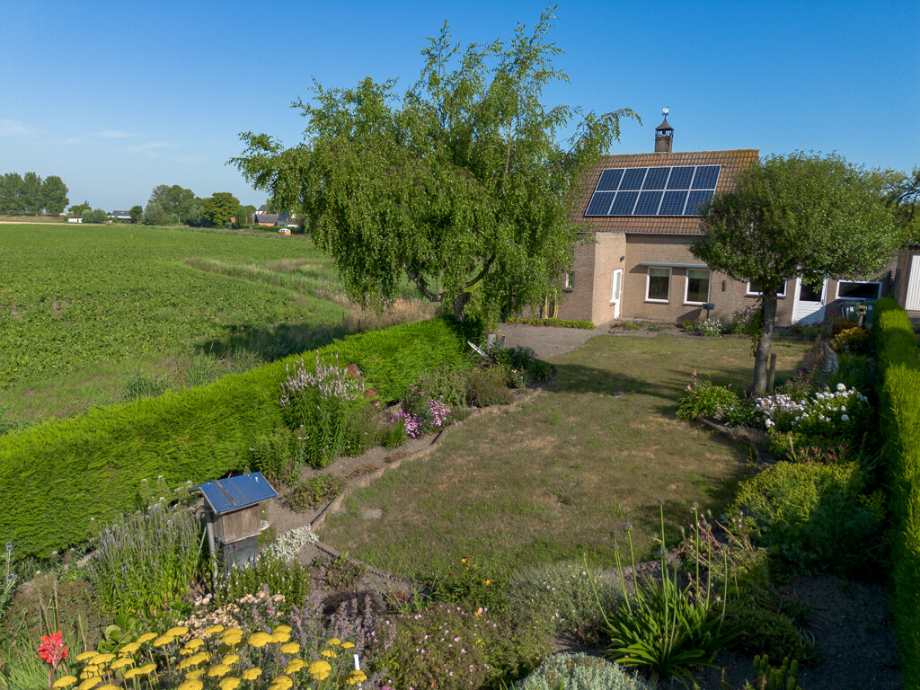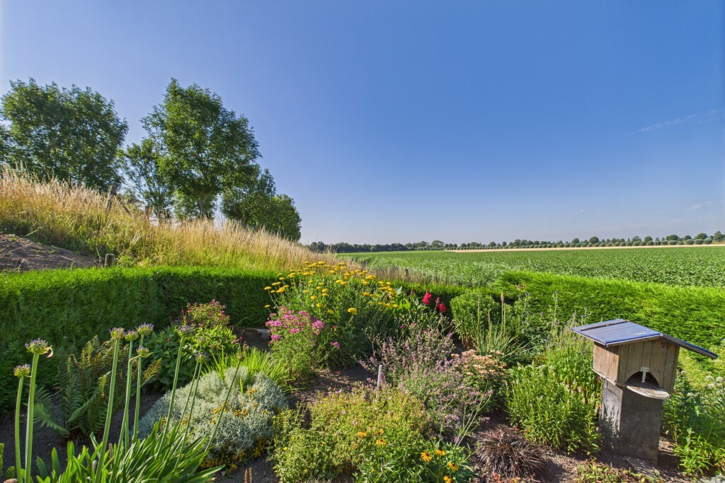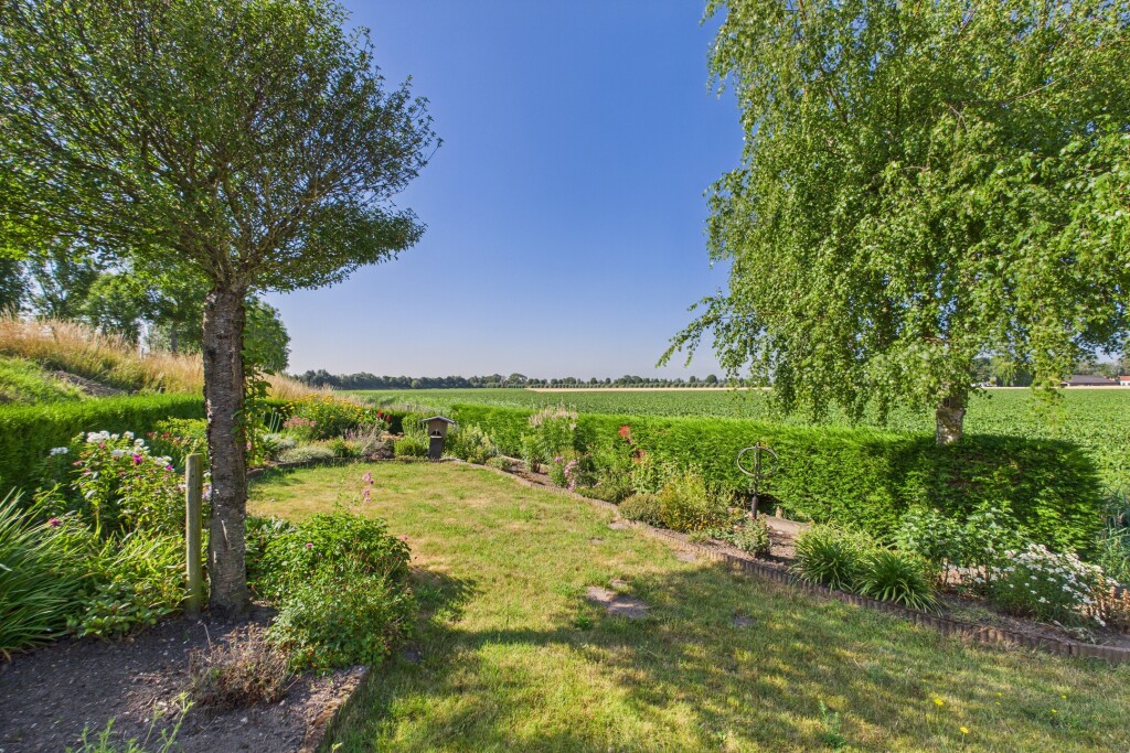 De tuin rondom de woning biedt volop mogelijkheden om buiten te leven. De achtertuin is gunstig gelegen op het zuiden, waardoor je hier de hele dag door van de zon kunt profiteren. Dankzij de vrije achterom is de tuin praktisch bereikbaar, terwijl het vrije uitzicht over de landerijen een gevoel van ruimte en privacy geeft.