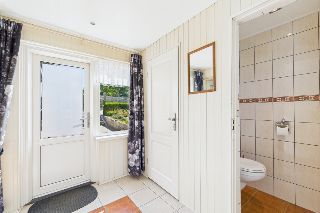 Via de hal kom je binnen in de woning, waar je toegang hebt tot de badkamer met douche en wastafel en een apart toilet. De doorzon woonkamer is licht en ruim, met een sfeervolle indeling en directe toegang tot de kelder. Aangrenzend vind je de open keuken, compleet met inbouwapparatuur, waar je tijdens het koken geniet van uitzicht op de tuin.