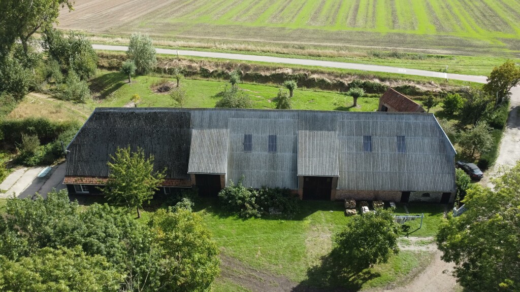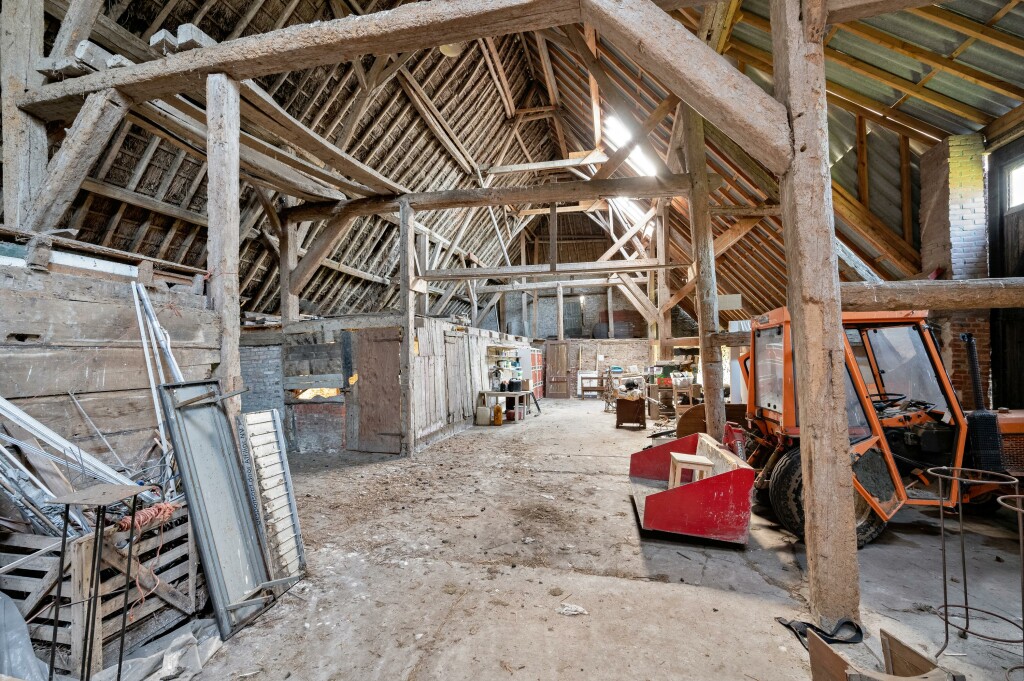 De indrukwekkende boerenschuur van circa 560 m² bestaat uit diverse compartimenten met royale opslagruimtes, voormalige stalruimtes en een volwaardige woonunit.