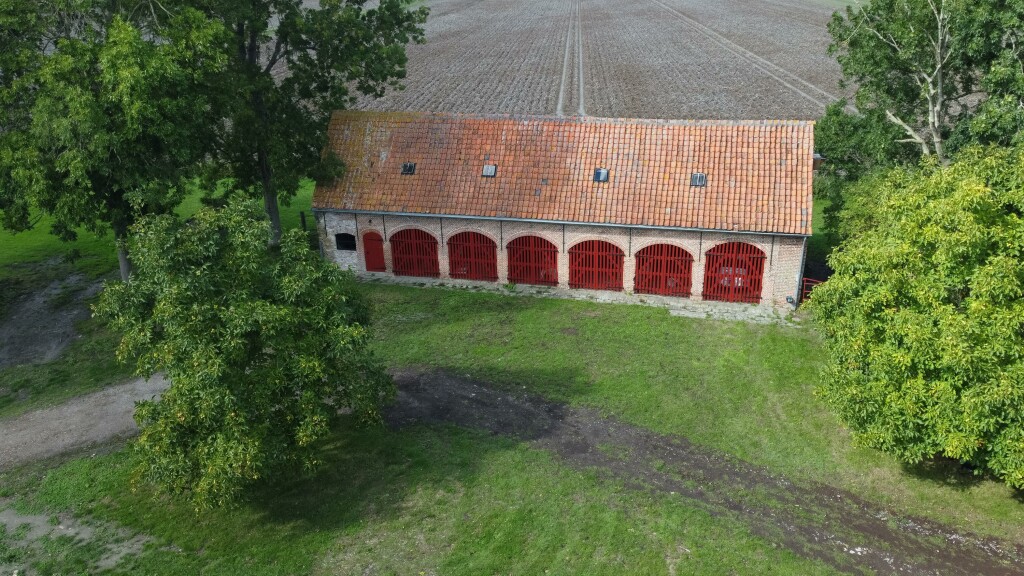 Het wagenhuis van circa 200 m² biedt plaats aan zes auto’s, beschikt over een royale bergzolder én is voorzien van een goedgekeurde omgevingsvergunning voor vijf luxe recreatieappartementen.