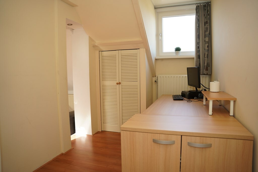 De tussenkamer zelf heeft een dakkapel en is een ideale ruimte om een mooie werkplek, studeerplek of speelkamer van te maken. Natuurlijk is er ook ruimte voor kasten, zodat een dressroom ook tot de mogelijkheden behoord.