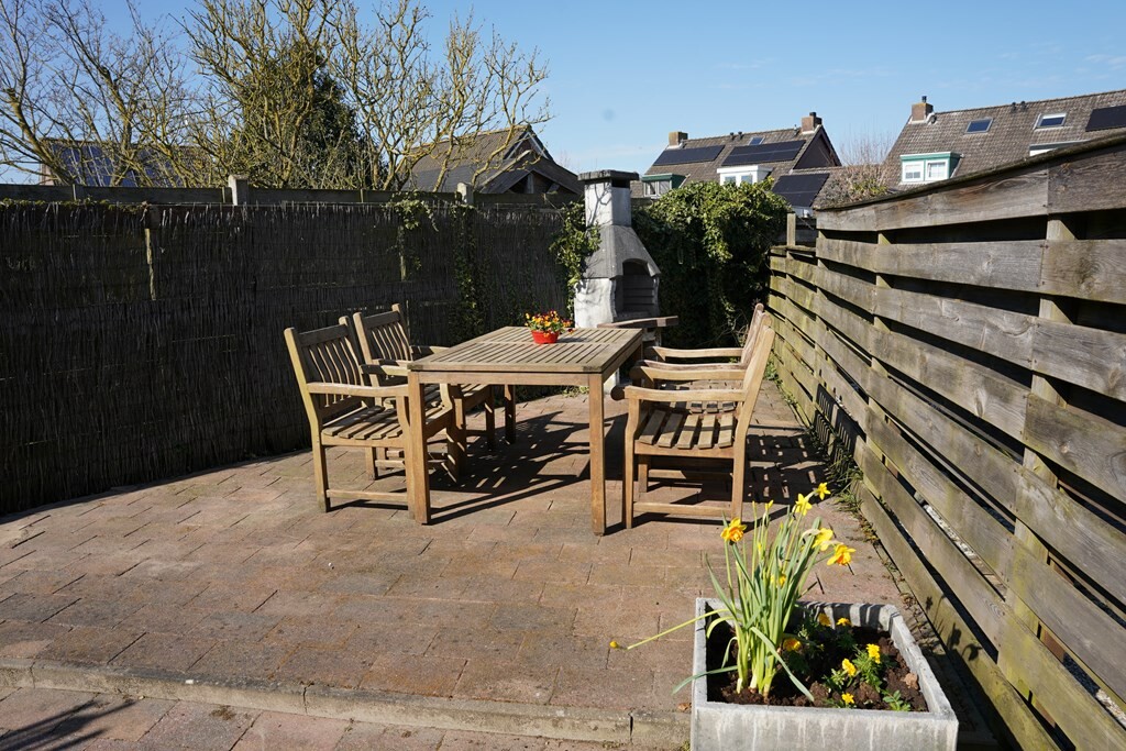 De tuin is onderhoudsvriendelijk en biedt genoeg ruimte voor een gezellige zithoek en een eettafel met barbecue. Of je nu wilt relaxen in de zon of een etentje organiseert, hier kan het allemaal! En wil je er nog een trampoline bij zetten? Geen probleem, dat kan ook.
