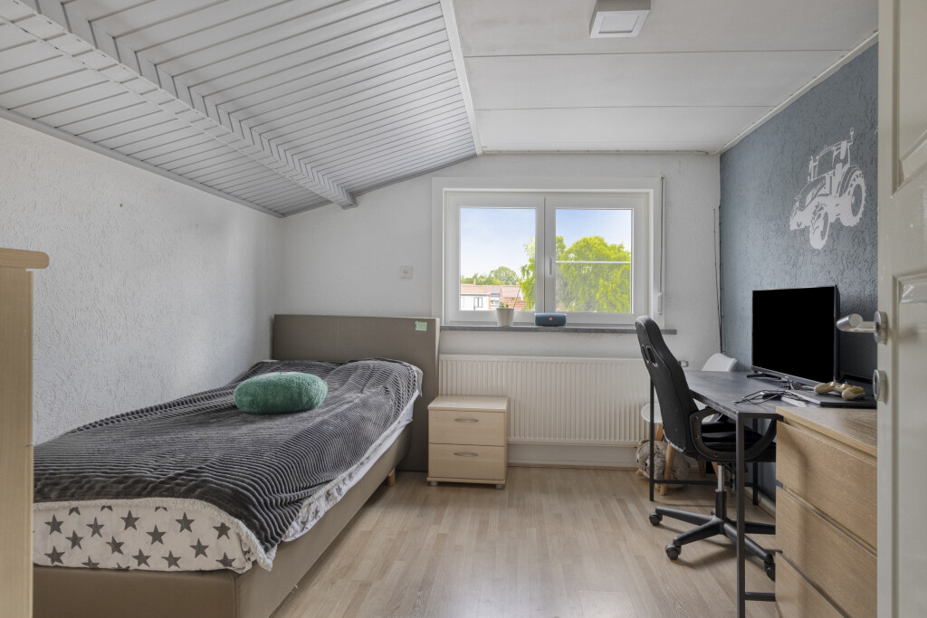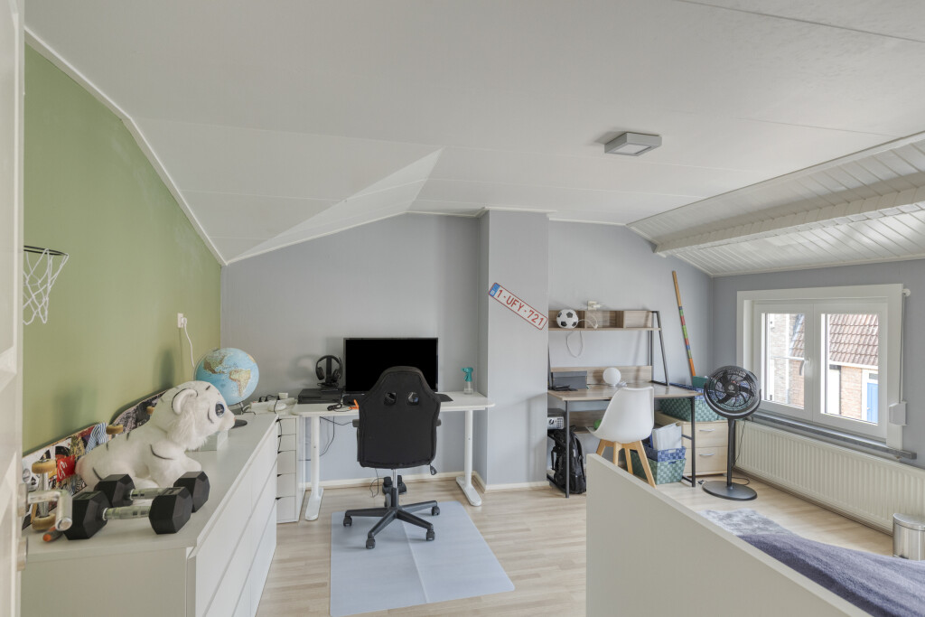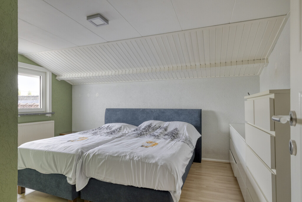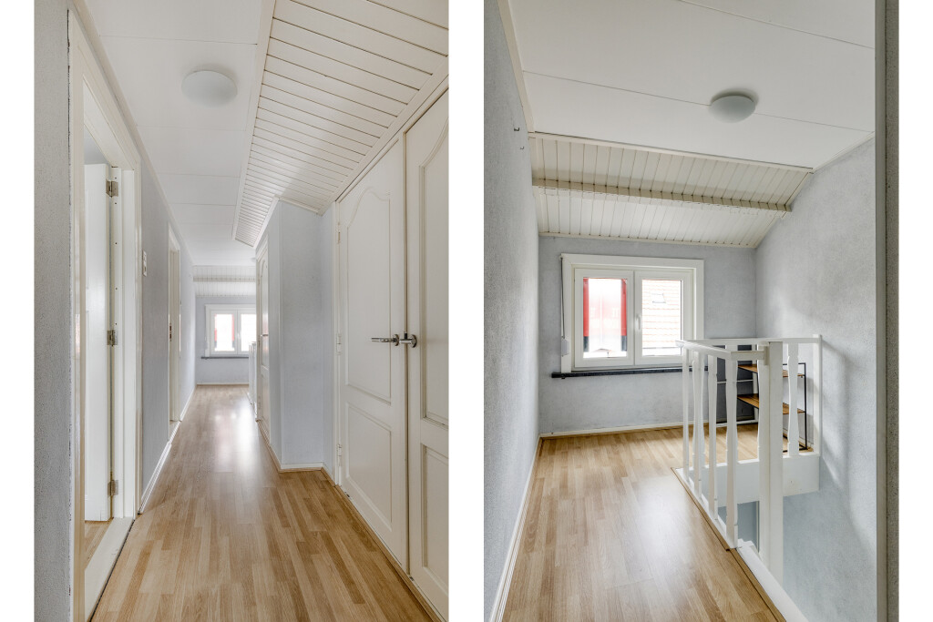 Op de eerste verdieping bevinden zich de overloop en 3 slaapkamers. Alle slaapkamers zijn goed van formaat en voorzien van een laminaatvloer en rolluiken voor een optimale nachtrust. Op de overloop bevinden zich nog een ingebouwde kast en de cv-ruimte.
