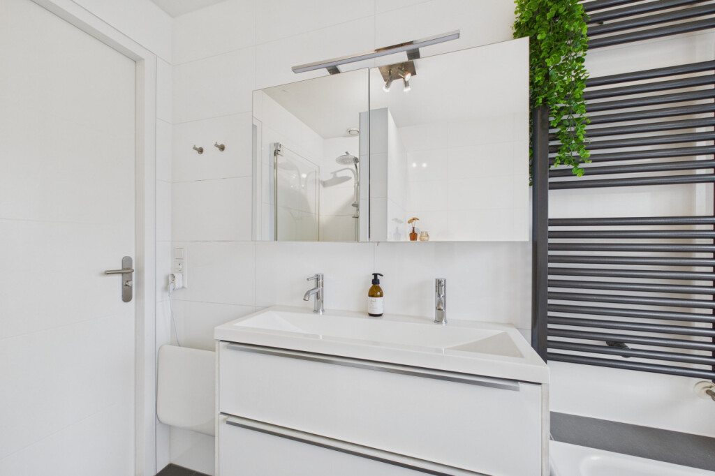 Op de eerste verdieping vind je 3 ruime slaapkamers, allemaal voorzien van laminaatvloeren. De moderne badkamer beschikt over een ligbad, douchecabine, wastafelmeubel en tweede hangtoilet. Ook op deze verdieping is airconditioning aanwezig voor een aangenaam binnenklimaat in elk seizoen.