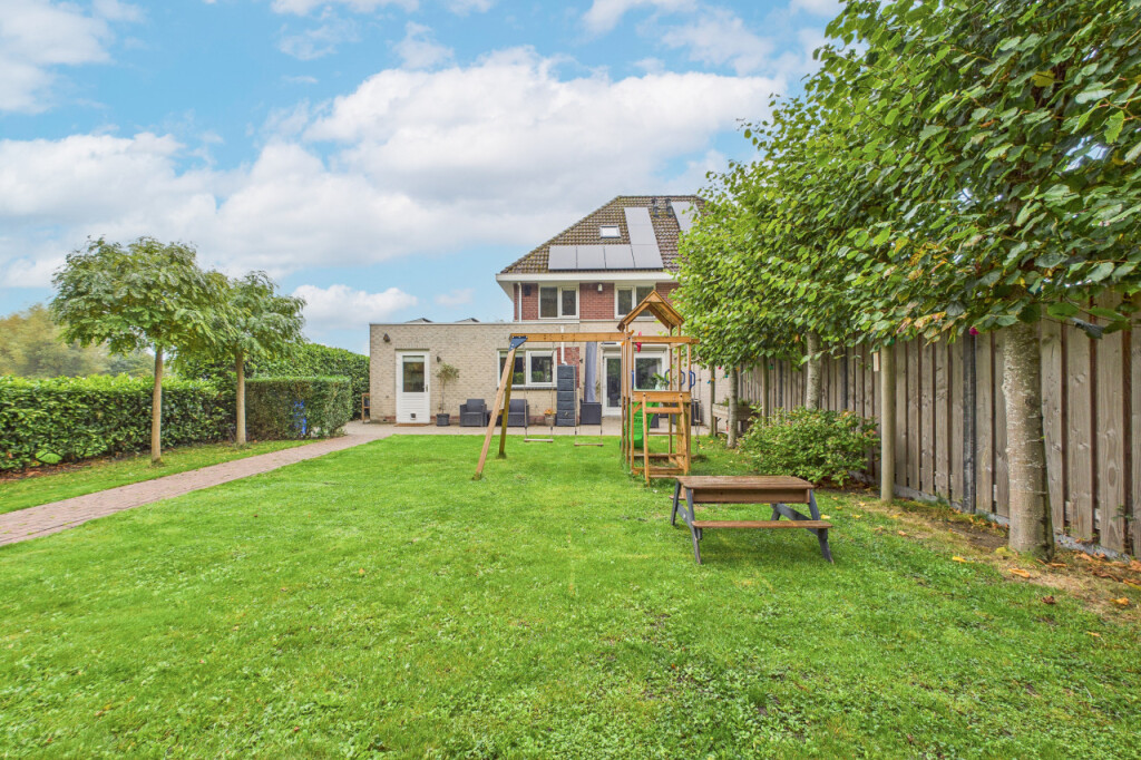 Ruimte, rust, comfort én een vleugje natuur: deze royale twee-onder-een-kapwoning met garage combineert het allemaal. Hier woon je op een heerlijk ruime kavel van 388 m², aan de rand van een rustige en groene woonwijk, met een groot stuk openbaar groen, een vijver én een bosgebied direct achter je tuin. De woning is gebouwd rond 2002/2003, in de loop der jaren gemoderniseerd en voorzien van diverse duurzame verbeteringen zoals 21 zonnepanelen, airco en elektrisch bedienbare rolluiken.