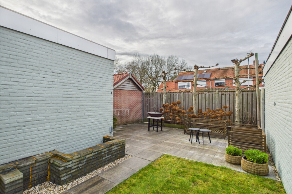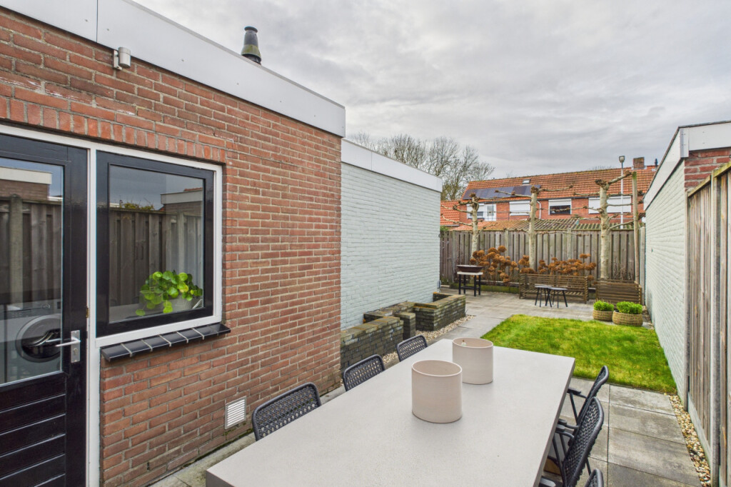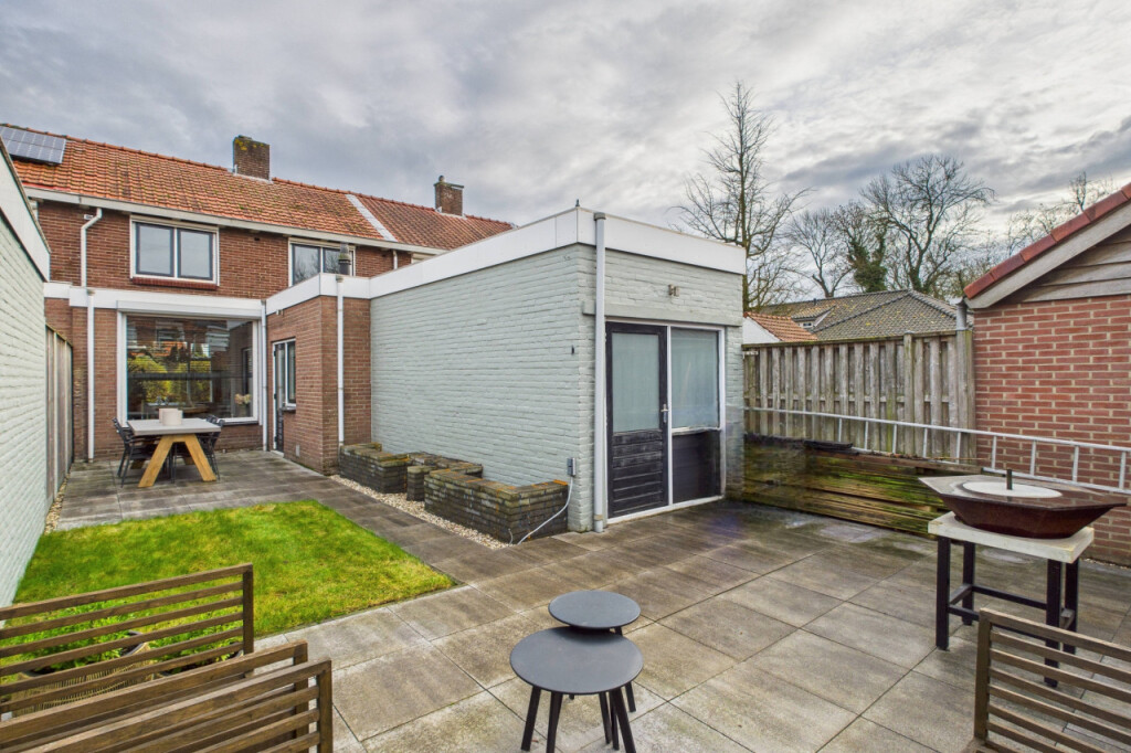 De achtertuin is een zonnige en prettige plek om te ontspannen. Gelegen op het westen vangt de tuin ’s middags en ’s avonds volop zon, terwijl de vrije achterom en de aangebouwde stenen berging extra gemak en opbergruimte bieden. Dankzij de combinatie van licht, privacy en praktische indeling is dit een tuin waar je graag tijd doorbrengt.