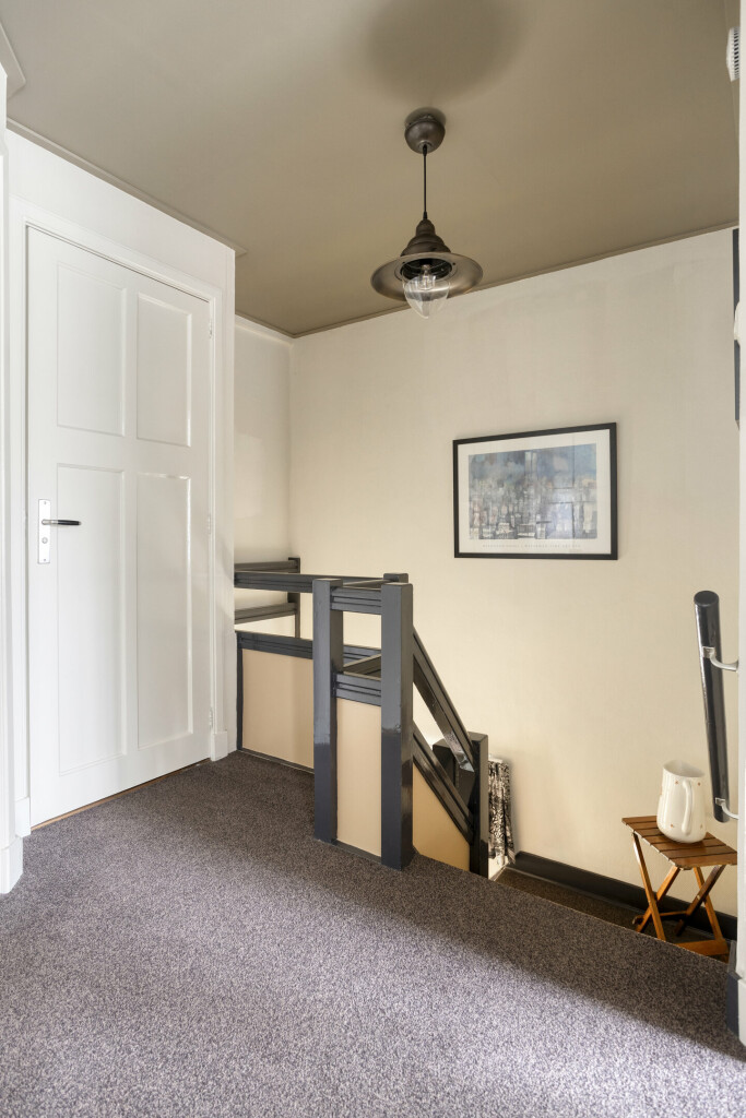 Via de prachtige bordestrap kom je op de eerste verdieping. Deze verdieping is ingedeeld met een overloop, drie ruime slaapkamers en de badkamer. Alle slaapkamers hebben nog de originele ingebouwde kastruimtes. De slaapkamer aan de voorzijde heeft daarbij nog een balkon en de slaapkamers aan de achterzijde hebben rolluiken. De badkamer is uitgerust met een douche, wastafel en tweede toilet.