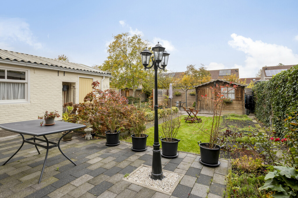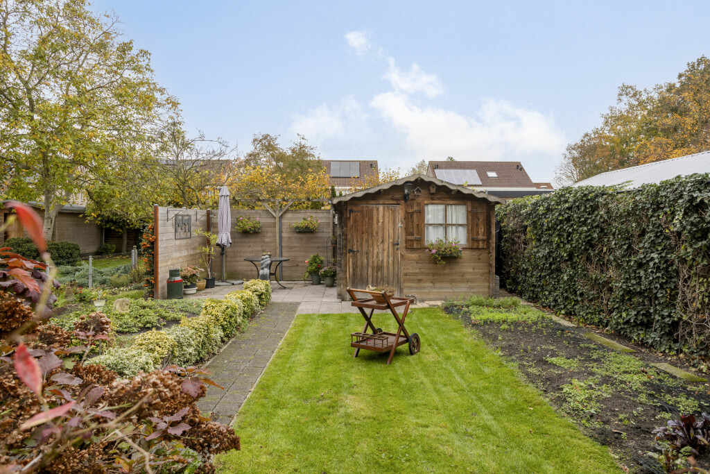In de tuin zijn nog twee bergruimtes. De ene bergruimte is aangebouwd achter de bijkeuken en de andere bergruimte betreft het houten tuinhuis. Zo is er voldoende ruimte om fietsen, tuinmeubilair en gereedschap makkelijk een plek te geven.