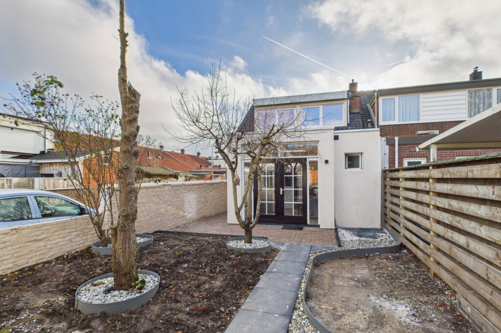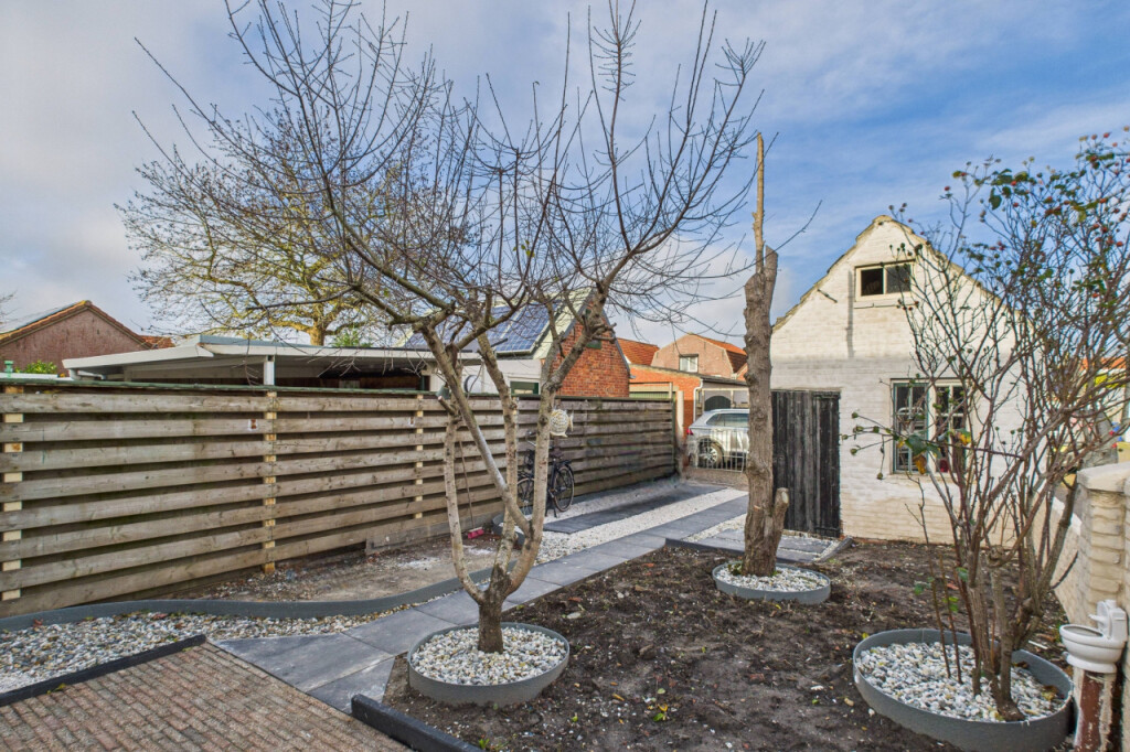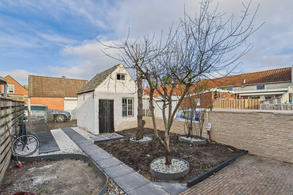De tuin is een fijne plek voor wie graag buiten leeft. Gelegen op het noorden en verrassend ruim van opzet, biedt hij volop mogelijkheden voor een loungehoek, speelplek of groene invulling. Dankzij de vrije achterom is hij gemakkelijk bereikbaar en de vrijstaande stenen berging zorgt voor praktische bergruimte. De nette border met verschillende bomen geeft de tuin een vriendelijk en groen karakter.
