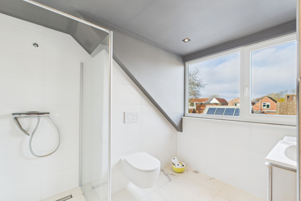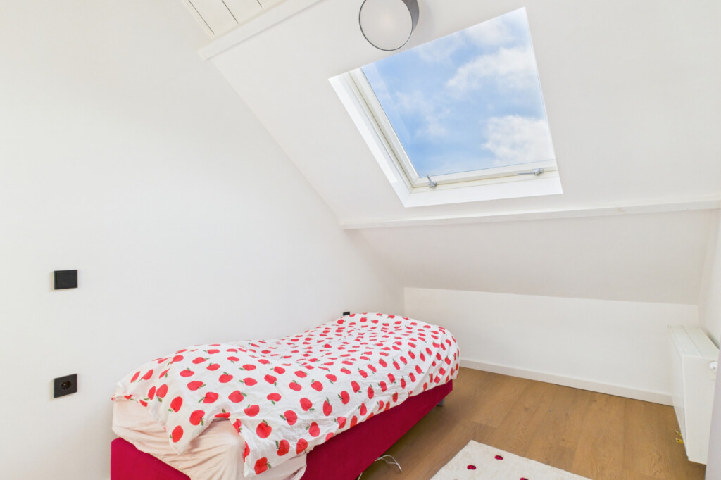 Op de eerste verdieping brengt de overloop je naar twee slaapkamers aan de voorzijde van de woning. Daarnaast is er een tweede, eveneens in 2025 vernieuwde badkamer met douche, toilet en wastafel. De verdieping voelt compact maar praktisch aan, ideaal voor een jong gezin dat fijn wil wonen zonder onnodige ruimtes.