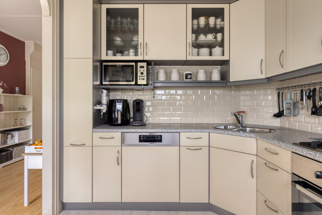 Bij binnenkomst word je verwelkomd in een lichte en sfeervolle woonkamer, die dankzij grote raampartijen rijkelijk gevuld wordt met zonlicht. De open keuken aan de achterzijde is van alle gemakken voorzien en biedt directe toegang tot de tuin. Hier is het heerlijk ontbijten in de ochtendzon of genieten van een zomerse barbecue met familie en vrienden.