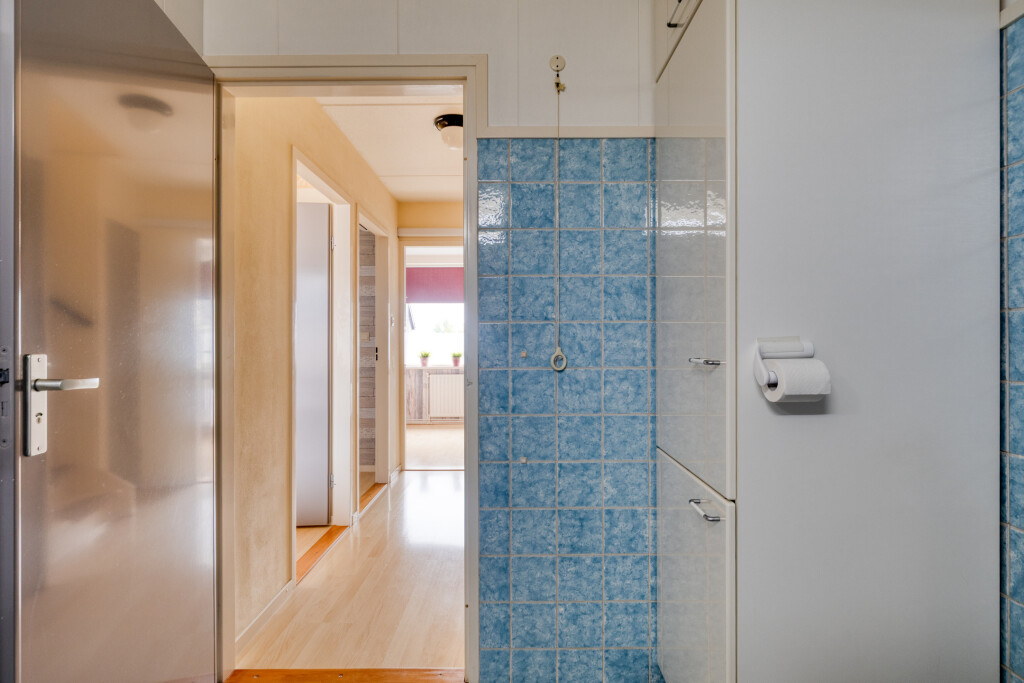 Op de eerste verdieping bevinden zich drie slaapkamers, waarvan twee ruim van opzet zijn en uitstekend geschikt als slaapkamers of werkruimte. De kleinere kamer leent zich ideaal als logeer- of studeerkamer. De badkamer is praktisch ingericht met douche, toilet en wastafel en vormt het centrale punt van de verdieping voor het hele gezin.