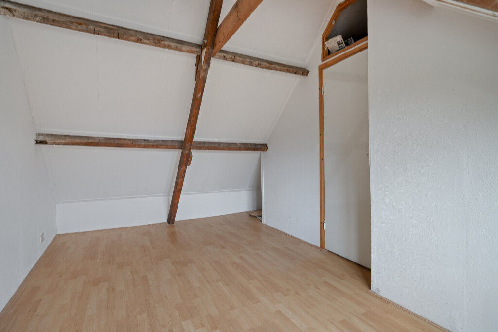 De woning beschikt over een lichte woonkamer en een aparte eetkamer, waardoor er volop ruimte is om gezellig te tafelen of juist knus te ontspannen. De ruime keuken met bijkeuken vormt het hart van het huis en biedt alle mogelijkheden om er een eigentijdse, sfeervolle leefkeuken van te maken. Op de begane grond vind je bovendien een extra kamer en een badkamer, waardoor gelijkvloers wonen tot de mogelijkheden behoort. Op de verdieping zijn twee slaapkamers aanwezig, waarvan de houten balken en schuine daken direct een gezellige sfeer geven.