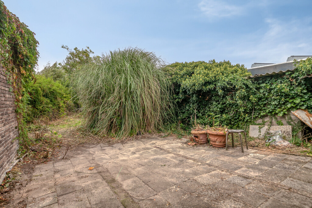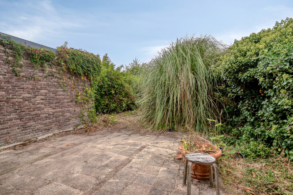 Direct aan de woning een gezellig terras. De diepe tuin vraagt om aandacht; achter al het groen gaat er een ruime achtertuin schuil. De berging is ruim en kan ook omgebouwd worden tot garage. Naast de woning is er een eigen oprit.