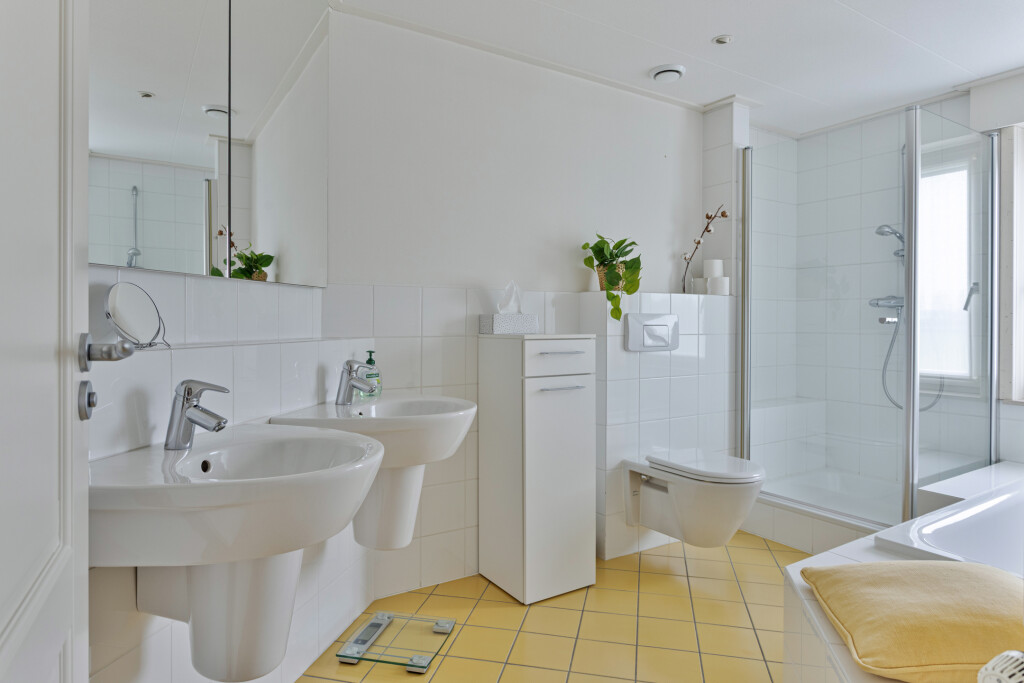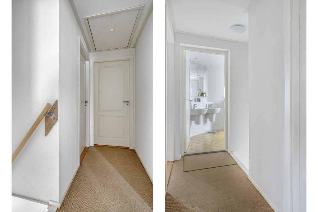 De overloop en de slaapkamers zijn voorzien van vloerbedekking en rolluiken. De badkamer beschikt over een ligbad, douche, hangtoilet en dubbele wastafel – alles wat u nodig heeft voor een ontspannen start of einde van de dag.
