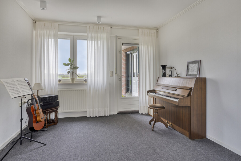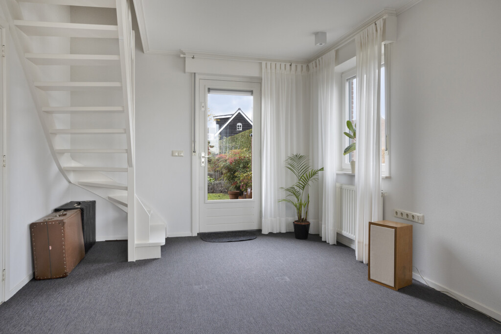 De royale aanbouw heeft een eigen ingang via de oprit, waardoor deze ruimte zich uitstekend leent voor een bedrijf aan huis en is voorzien van vloerbedekking, een deur naar de achtertuin en een vaste trap naar de eerste verdieping – een ideale werkplek of hobbyruimte met veel licht en privacy.